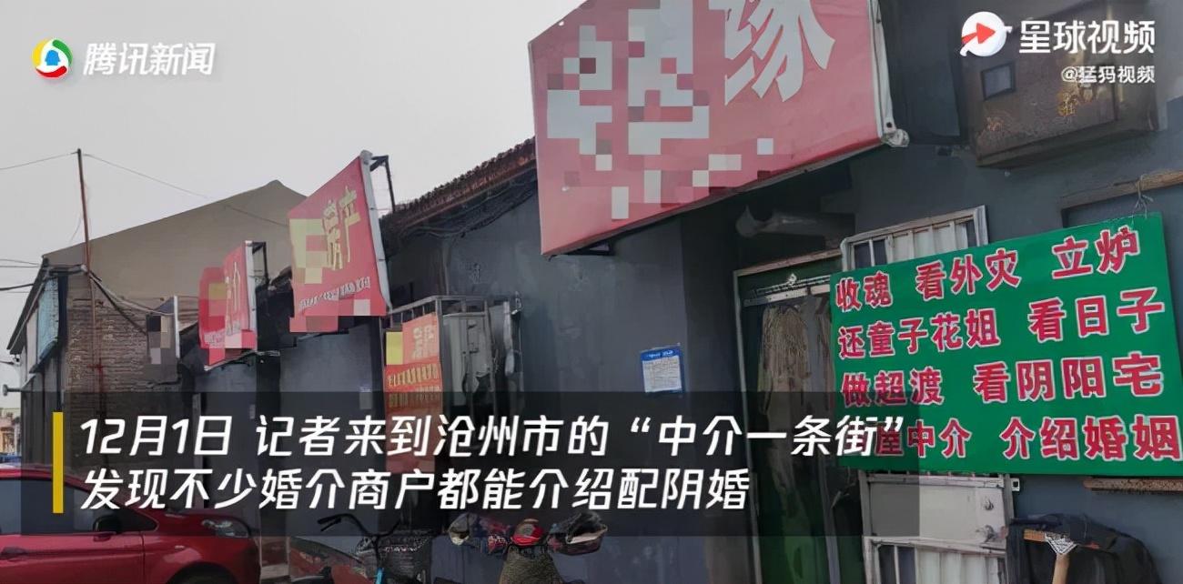 沧州市“中介一条街”不少婚介商户都能介绍配阴婚。据中介介绍,刚出事的有的得 10 来万,已经埋了的 4、5 万。中介会在记录完死亡男性的各种信息后,帮忙寻找适龄的女性死者,一般都需要等待。