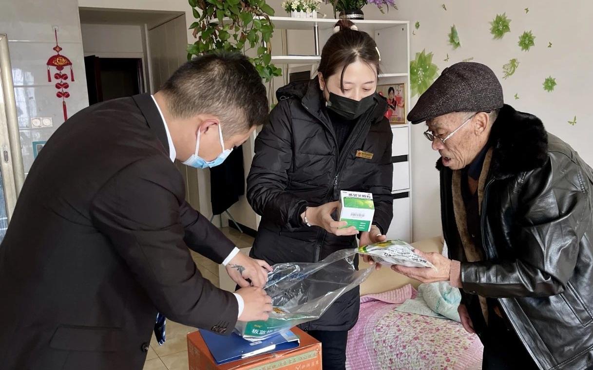 12月14日,李广斌给两位包干的独居老人,送去了一瓶酒精、一包医用口罩和一盒N95口罩。担心老人没有准备感冒药,他特意说,“大姨,没有药的话到时我给你整。”好在老人家里备好了药。